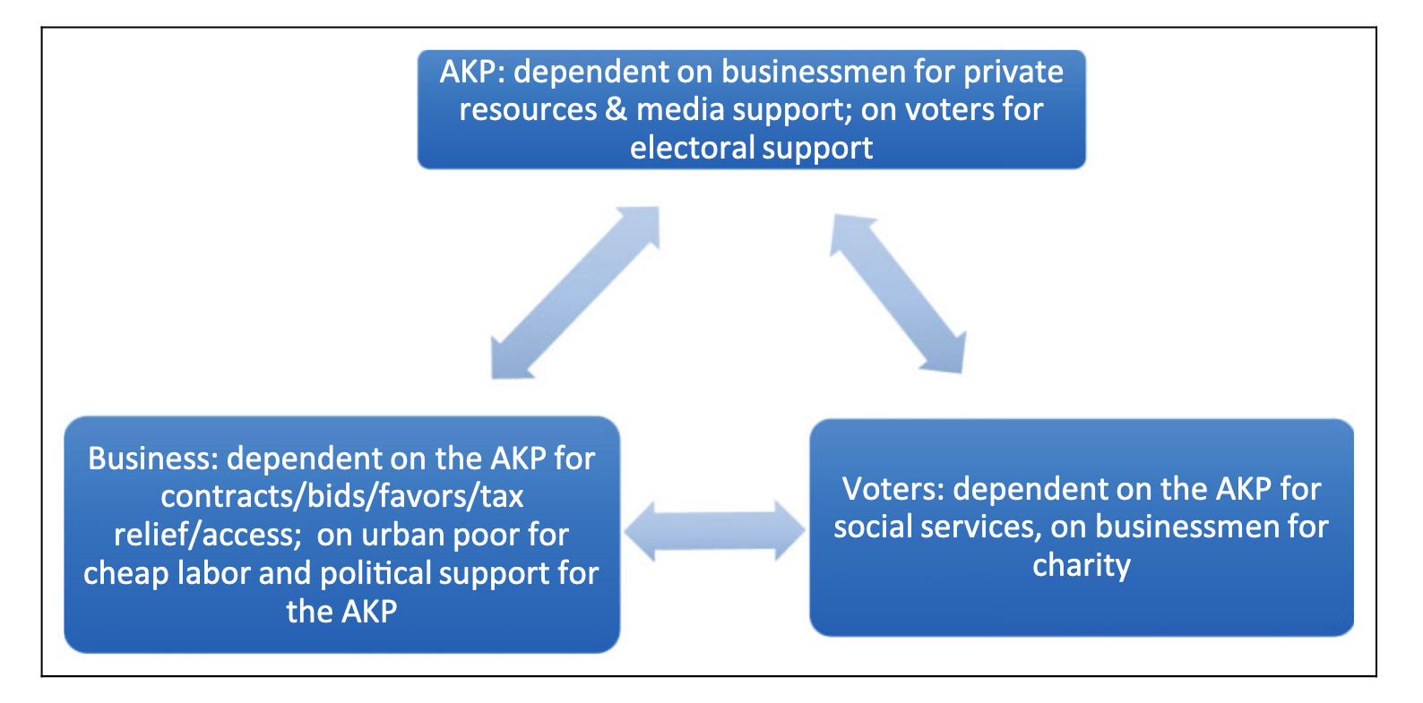 - At the root of the AKP’s democratic backsliding lays extensive capital accumulation and resource allocation for a cross-class coalition composed by the rising economic elite and the urban poor, respectively.